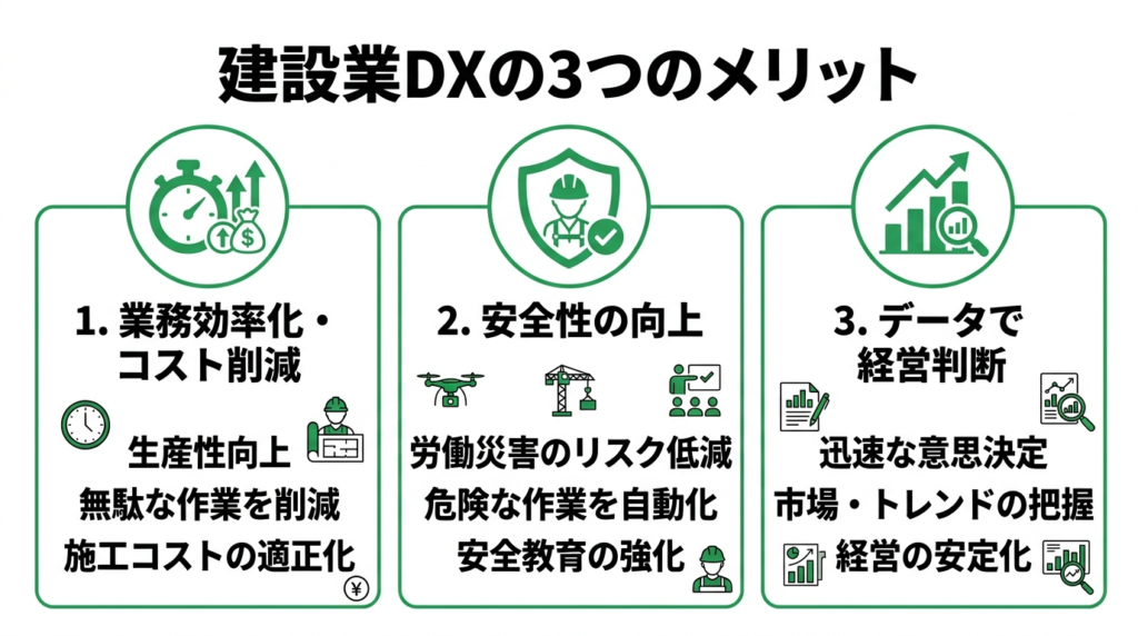 建設業DXで得られる3つのメリット
