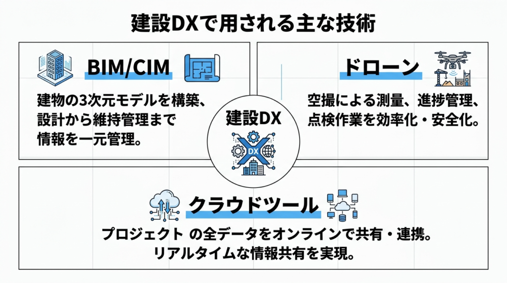 建設業DXで活用される主な技術