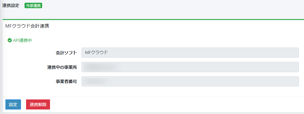 | 連携解除 | 「連携解除」を押下すると会計ソフトとの連携を解除します。 |