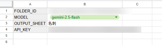 このスプレッドシートではGeminiシリーズの「Gemini 2.5 Pro」または「Gemini 2.5 Flash」のモデルを使用します。