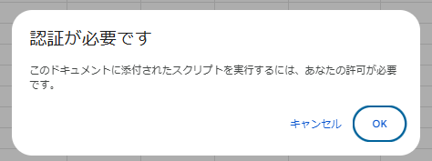(許可されなければ、本スプレッドシートは正常に動作しません)