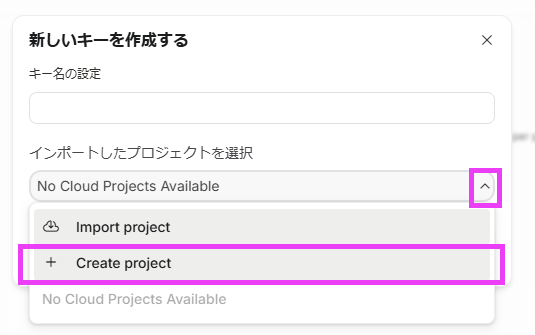 4. プロジェクト名を入力し「プロジェクトを作成」