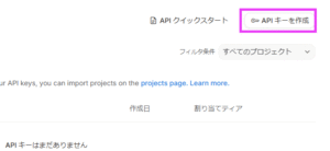 2. 右上にある「APIキーを作成」を選択