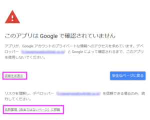 「詳細を表示」リンクをクリックすると、下方に詳細が表示されます。「名刺管理(安全ではないページ)に移動」をクリックします。